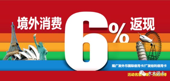 可参加的卡有广发外币国际信用卡、给利信用卡,境外消费单笔满15美元享6%返现,上限每个月300美元,活动期间最多享2次返现,线上线下都可以。