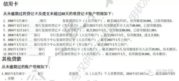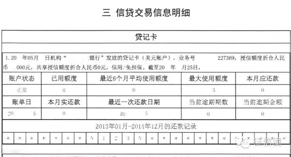 1.3 信贷交易信息 - 需要关注信用卡、贷款状态,节选部分列出交易明细