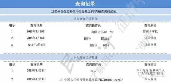 2)征信圈自己分别于4月28日,互联网查询,1月13日,通过自助机user037线下查询信用报告