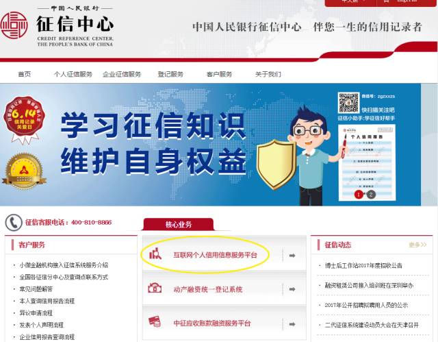 点击界面中间的 互联网个人信用信息服务平台 ↓