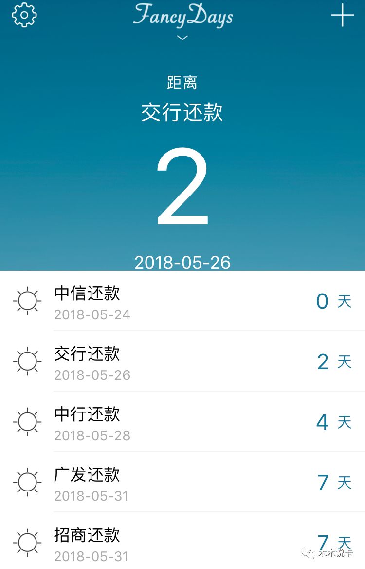 还有的朋友会使用有“倒计时”功能的软件,设置时间倒计时提醒,相当于不导入账单也有显示/提醒功能了,木木下载的是fancy Days软件,苹果自带的【提醒事项】工具也可以实现。