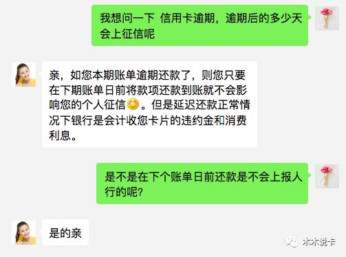 ps:不少银行的信用卡逾期,在该卡的下个账单日出来之前还款(最低还款)是不会上征信报告的,这个应该知道的人不多,每次和朋友聊起这个,都会反问“这是真的吗?”确实这样,木木北京银行信用卡也曾逾期10多日还款,告知在下期账单前还款最低就不会影响征信,是否是全部银行都采取这个政策,大家“实测”吧。