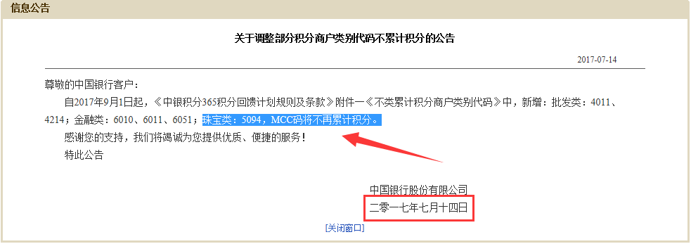 大额消费筹码珠宝类Mcc 5094 从2017年9月1日起中行就不积分了,估计很多人还不知道吧,还有几项金融收费类和运输类。