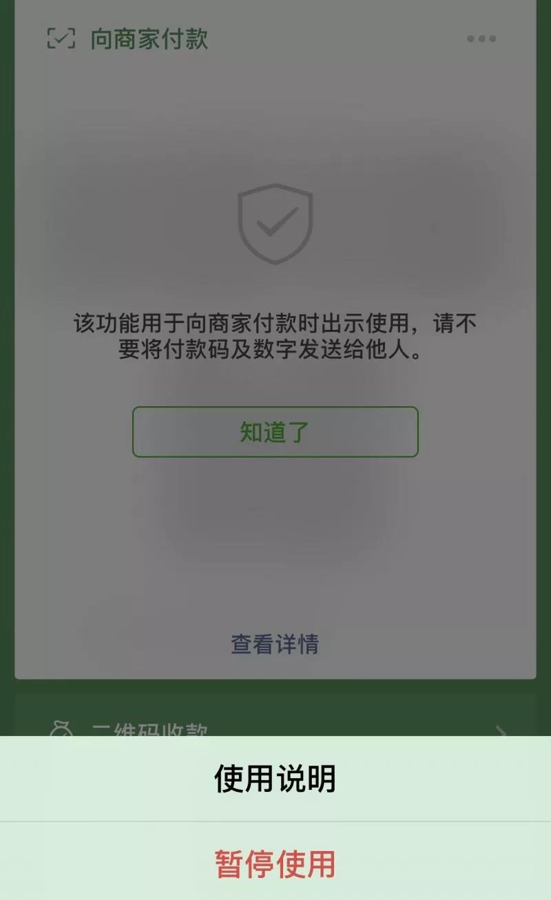 3、在上方“向商家付款”,点击右边“…”进入,选择“暂停使用”,就可以暂停使用付款功能了。