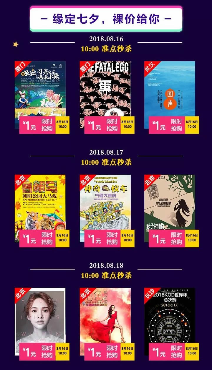 活动一: 8月16日、8月17日、8月18日三天,每天10:00