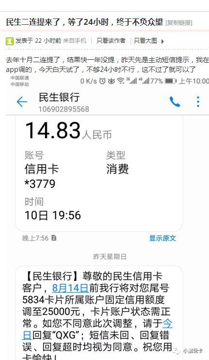 最近又有不少卡友在论坛发帖民生提额了,两连提甚至三连提都有!