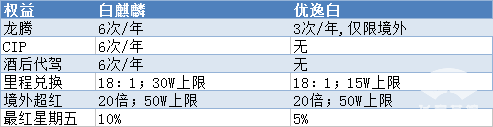 所以对龙腾CIP代驾没有需求人,我觉得优逸白反而更适合。他就是一张免年费小白金,换不满15W里程的小伙伴,白麒麟抵年费的25W积分完全可以拿去换里程!