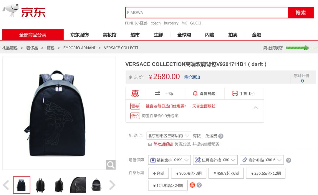 5000积分不难吧?年底十元风暴参加一下,成本约150块。那这个范思哲的双肩包实际只需260块就能拿到手了,京东同款售价高达2680元,积分兑换性价比无敌。讲道理,范思哲光Logo就能值千把块了吧?