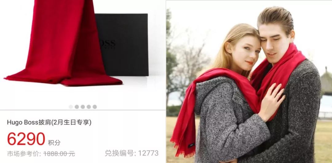 其实实验君早就知道了。今年2月份的礼物,是6290分兑换纯羊毛的Hugo Boss围巾,我就花了180块去闲鱼收了一条,质感不错。毕竟以极低价格买个奢侈品,还不用担心假货问题。