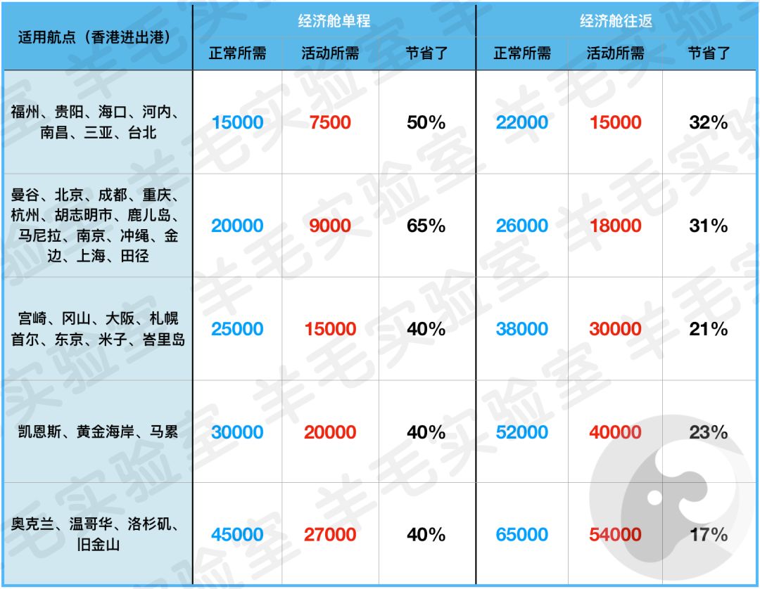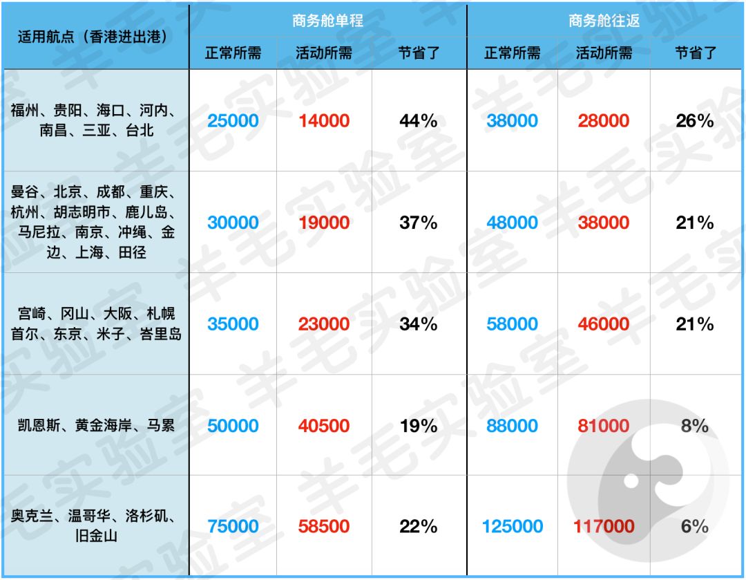 比如北京的朋友去香港,深圳的朋友从香港去鹿儿岛,原本经济舱单程需要2万里程,现在只要9000里程,非常划算了可以说。而且香港航空在今年世界排名第20名,服务水平有口皆碑。
