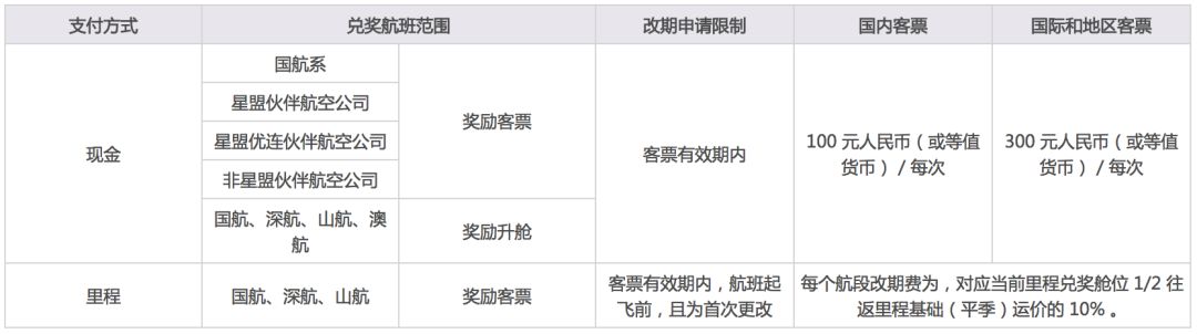 在网上更改,同舱位将按每人每航段25美元或1000里数积分的标准收费。通过客服电话、柜台或其它任何非网上渠道更改预订,将按每人每航段40美元或4000里数积分的标准收费。