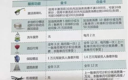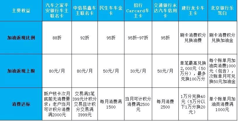 1、先看“乐驾白”和主流银行车主卡加油权益对比:
