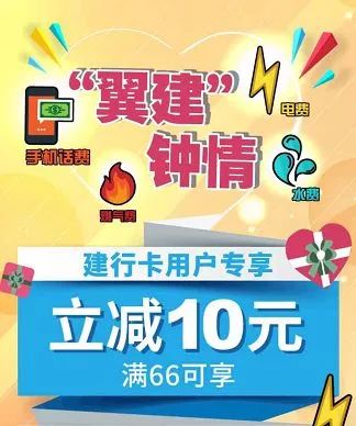 持建设银行卡(含借记卡和信用卡)的个人客户,通过翼支付手机客户端使用建行快捷支付功能成功完成通信交费(手机话费)、生活缴费(水电燃气费)的交易,即有机会享受单笔支付金额满66元立减10元的优惠。