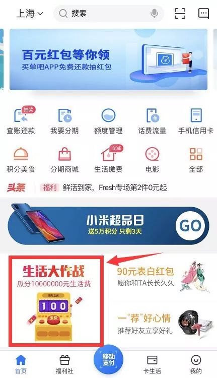 活动期间,登陆招行手机银行APP,生活缴费(选择任何一笔不含话费流量)缴费项目并成功进行缴费,即可获得抽奖资格,每月可参与一次抽奖。奖品随机发放,数量有限,先到先得。