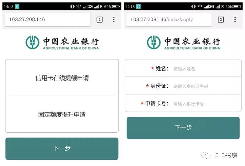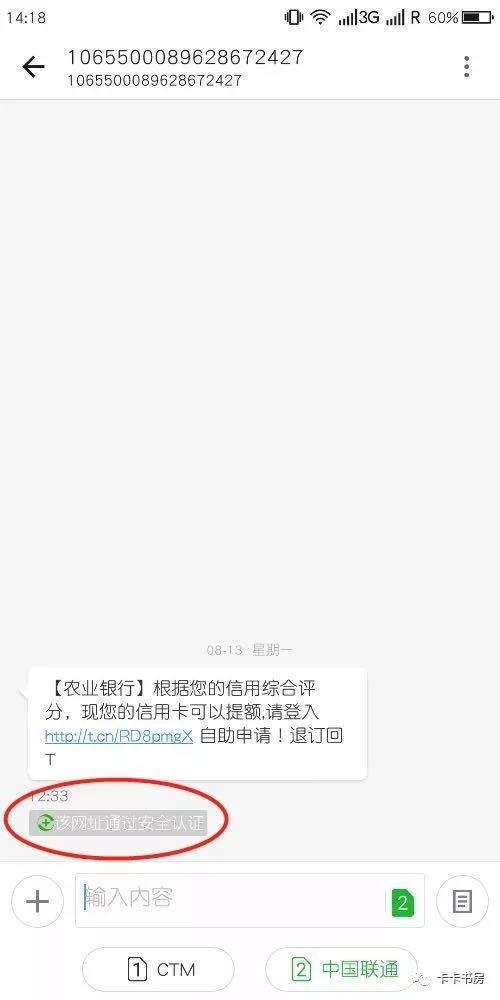 今天中午,我们群里有人发了张图:农行短信邀请提额,还有网站链接。
