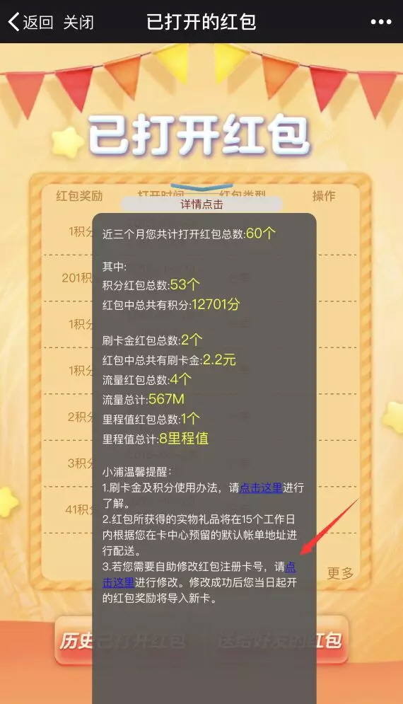 8,唯一一个需要截图说明一下的是,如果你想把开出的积分兑换到IHG卡或者航空卡等,需要设置一下:已打开红包-正下方详情点击-点击这里