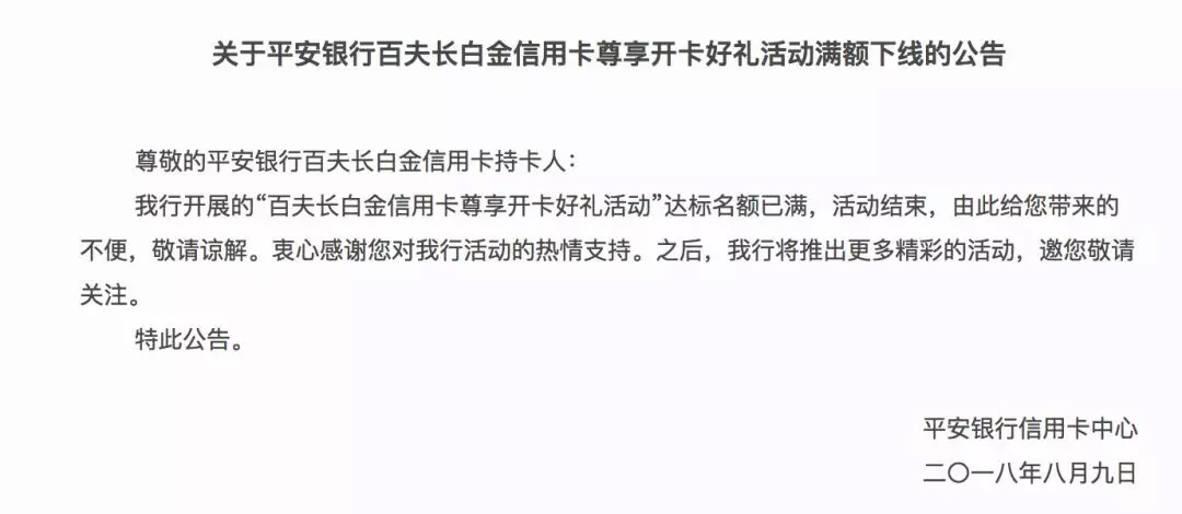 在多位持卡人咨询平安客服之后,获得的结果不一(平安的信用卡客服想想就知道了,没个准话),有告知名额还有的,放心刷,有告知已经结束的。