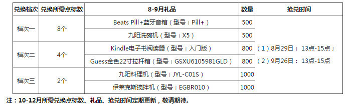 我行将在每月抢兑前,通过短信通知客户截至目前持有的点标数量、兑奖时间、可兑换礼品,客户可根据短信提示登录掌银抢兑礼品,每档礼品数量有限,先到先得,领完为止。具体点标对应礼品如下: