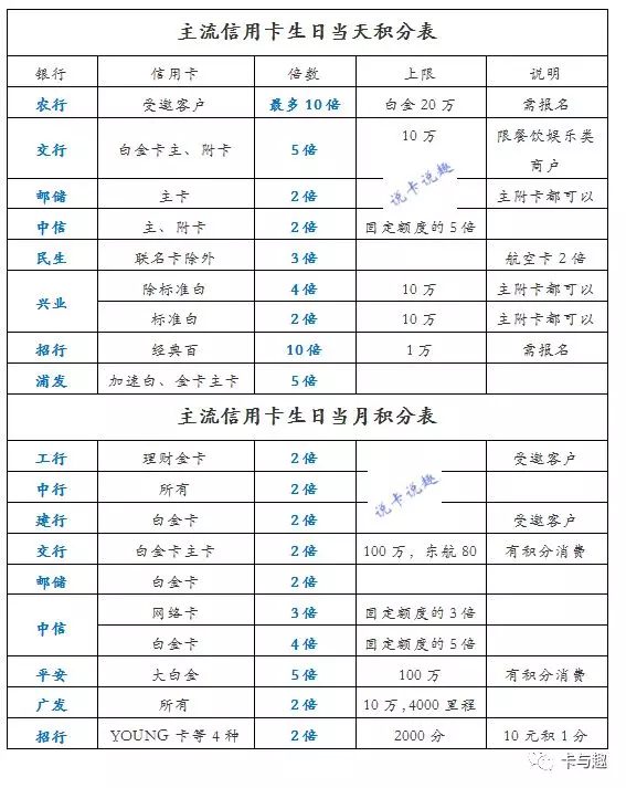 银行在生日当天及生日月有多倍积分的活动,生日多倍积分一年仅一次,大家一定要把握住生日月及生日当天,为了让大家的生日月薅足积分,薅准积分,主流信用卡生日当天及生日月积分表供大家收藏使用,祝大家生日快乐,多赚积分。
