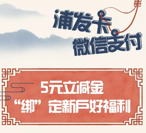 首次在微信【钱包】-【银行卡】绑定浦发银行储蓄卡,即可获得5元浦发储蓄卡微信支付立减金。使用浦发储蓄卡支付金额大于5.01元时可抵扣。