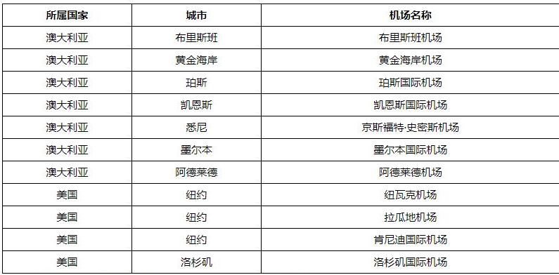 1.本次活动的接送机服务适用城市如下: