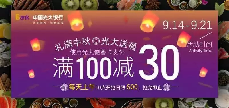 *在中粮我买网电脑端(www.womai.com)及手机客户端使用光大储蓄卡“快捷支付”,即可享受满100元减30元优惠。