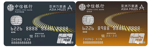 看看这张中信亚万联名卡,金卡和白金卡的区别在于积分转换成亚万里程的比例不同,其他都一样,白金卡和金卡的卡面如下。