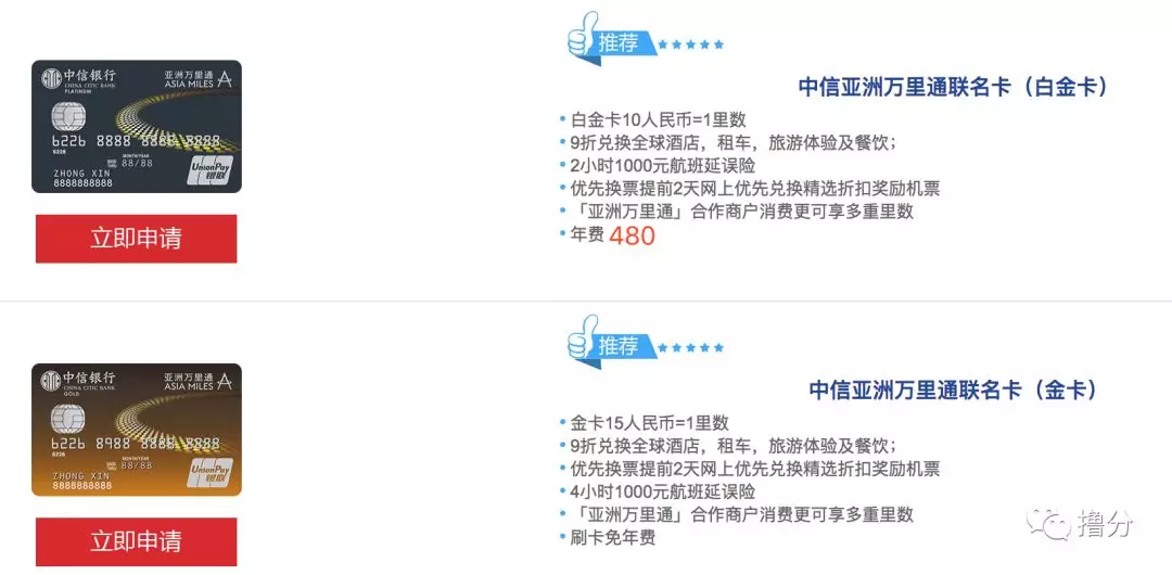 中信亚洲万里通联名卡