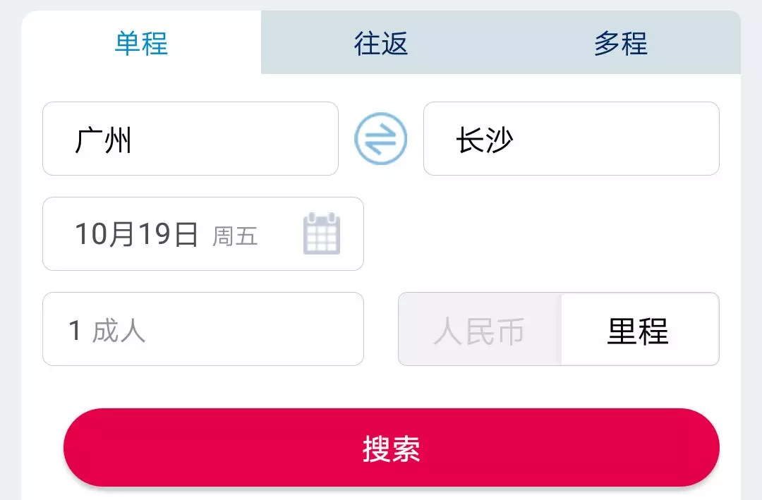 2、搜索广州-长沙,结果如下: