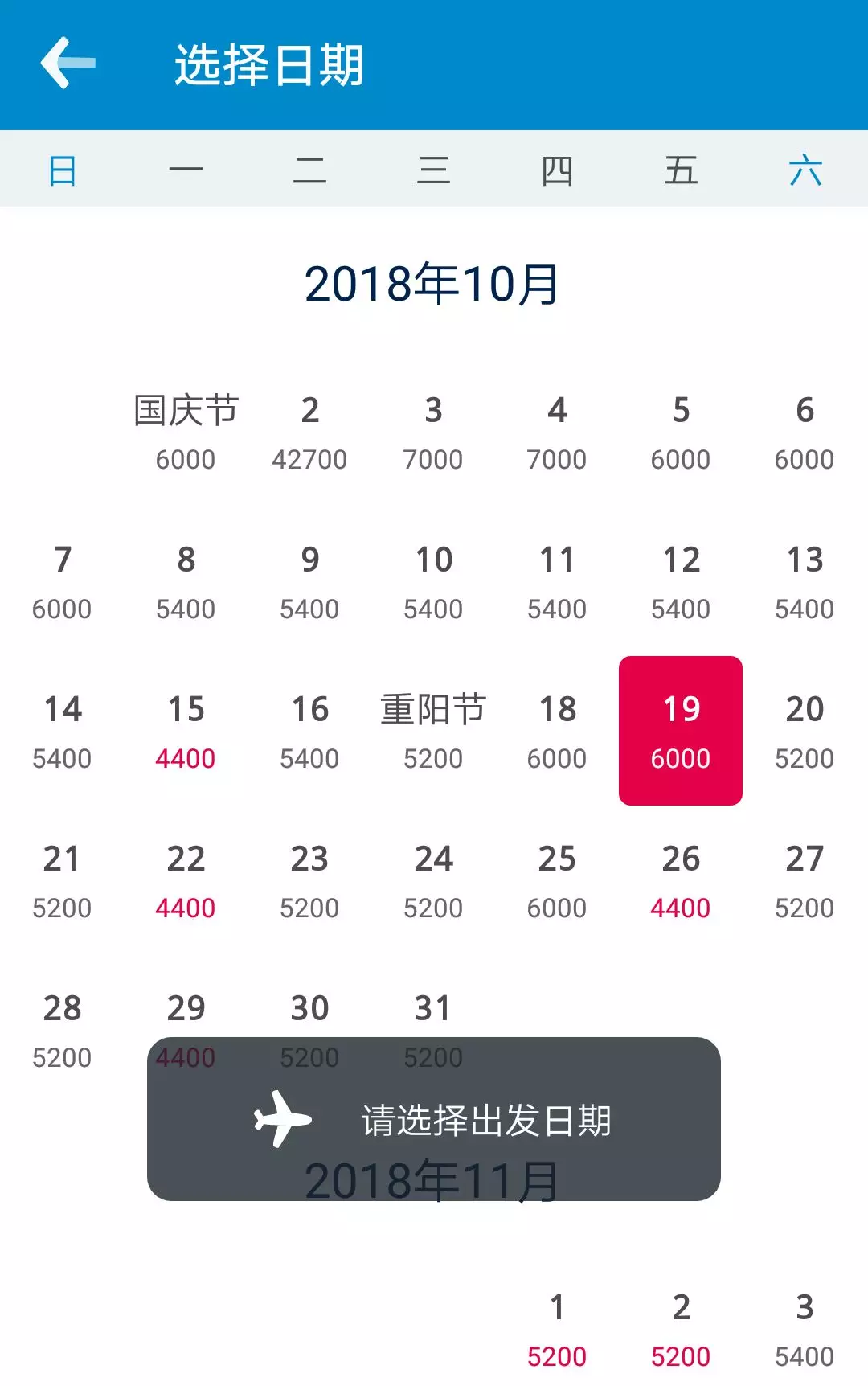 3、点击“日期”可按月查询最低兑换里程价格: