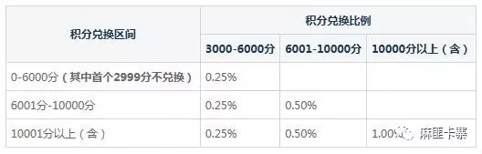 累计积分达到3000分及以上时,持卡人可按照如下超额累进比例进行兑换: