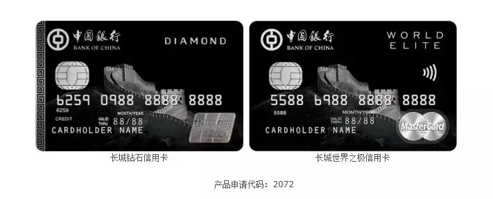 中银长城钻石卡+长城世界之级卡