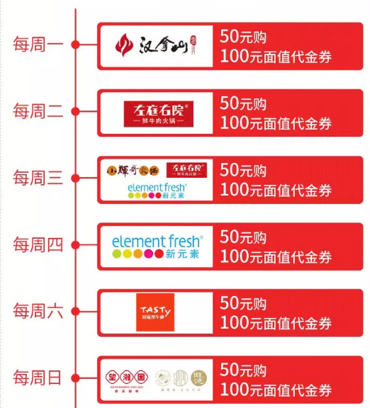 浦发信用卡半价美食,天天优惠活动开始了,周一至周日,每天一个半价机会在等你哦!